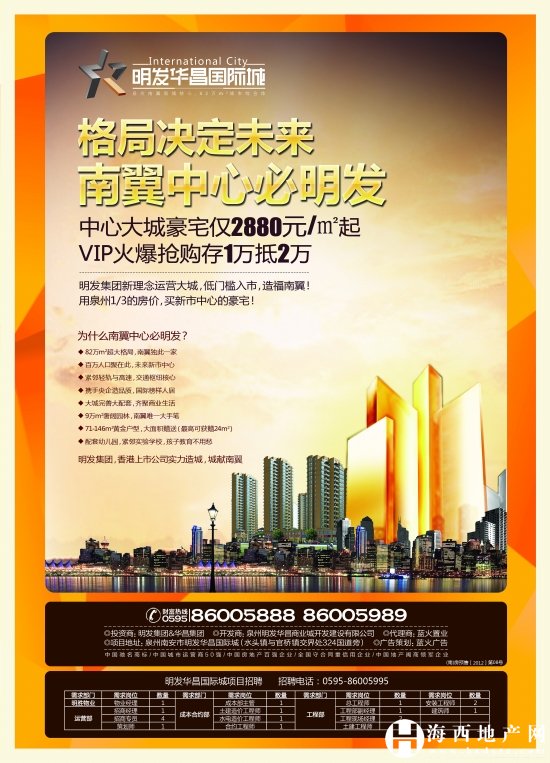 (海西地產網8月24日報道)明發華昌國際城VIP火爆認籌中存1萬抵2萬,中心大城豪宅僅2880元/平起,震撼泉州!