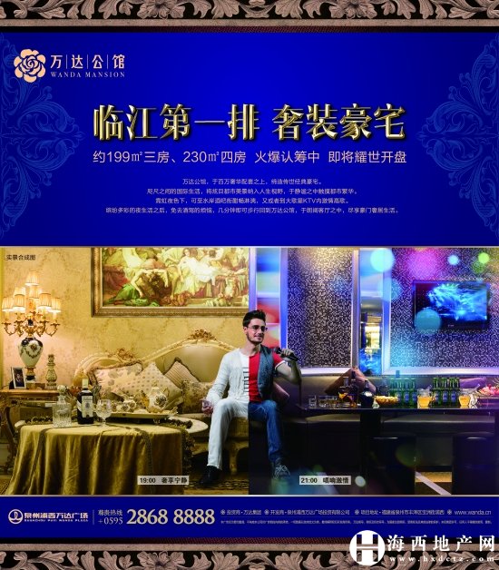 (海西地產網5月9日報道)泉州浦西萬達公館臨江第一排奢裝豪宅,約199㎡三房、230㎡四房,火爆認籌中,即將耀世開盤。