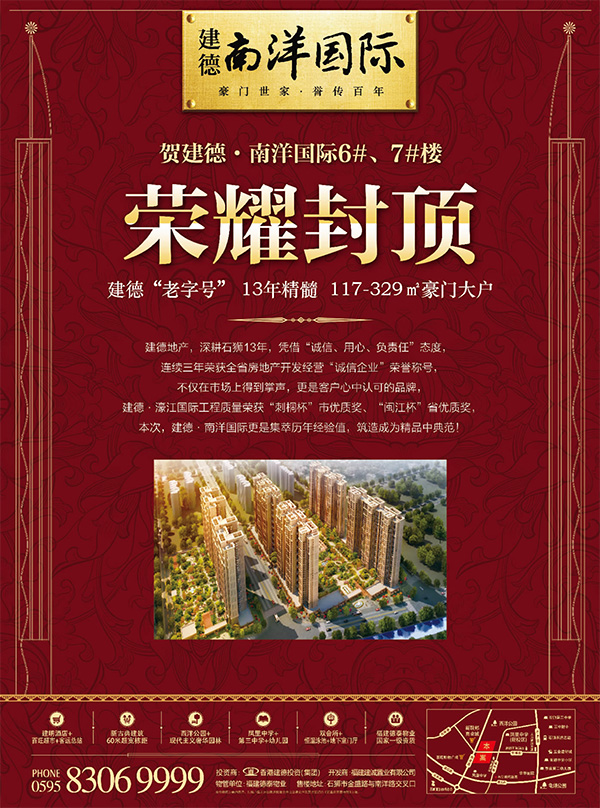 建德地產,深耕石獅13年,憑借“誠信、用心、負責人”的態度,連續三年榮獲全省房地產開發經營“誠信企業”榮譽稱號,不僅在市場上得到掌聲,更是客戶心中認可的品牌、建德濠江國際工程質量榮獲“刺桐杯”市優質獎、“閩江杯”省優質獎。本次建德南洋國際更是集萃歷年經驗值,筑造成為精品中的典范!