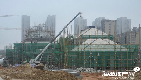 記者隨后來到項目工地探究工程進度,現場工人有條不紊地工作中,目前進行施工的部分是售樓部,如今已經封頂,外立面正在裝修中。除此之外,工地上其他部分還未有大動靜,另據悉,萬科金域中央的相關產品還在規劃中,將打造更適合石獅市場的產品,下半年集中發力。