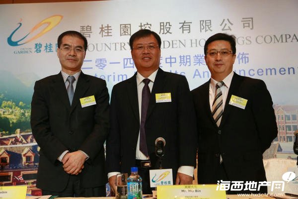 碧桂園半年業績發布會:莫斌(中)、朱榮斌(右一)、吳建斌(左一)