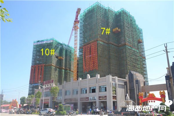 小編走訪工地發現,目前裕福國際城一期第一組團的4棟高層1#、3#、7#、10#樓均已建至10層以上。其中,1#樓和3#樓均處地面13層半左右;7#樓和10#樓進度快一步,建至14層左右;小區大門和一期住宅下的底商外立面均已呈現,工地施工中。