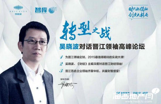 4月3日,中航城力邀中國經濟專家吳曉波攜手晉江智庫,對話晉江領袖高峰,論劍企業轉型之變。屆時,中航城2015戰略同步發布。時代新領袖,創變大格局,發布會報名即將開啟,敬請期待。