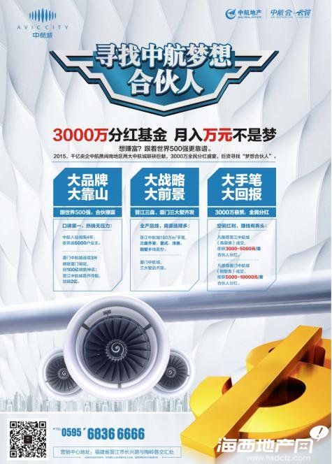 2015,千億央企中航攜閩南地區兩大中航城聯袂巨獻,3000萬全民分紅盛宴,巨資尋找“夢想合伙人”。