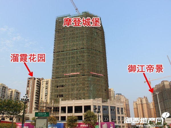 4月底,大清摩登城堡營銷中心裝修中;5月初,相關工作人員正式入駐。大清摩登城堡目前封頂,據悉,近期即將開啟落架,預計10月開盤。