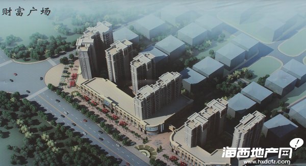 財富廣場分為兩區建設,A規劃有4幢商住樓(1#、2#、5#、6#樓)、2幢住宅樓(3#、4#樓)、1幢沿街商鋪店面(10#樓),B區建設內容為3幢商住樓(7#、8#、9#樓)、1幢沿街商鋪店面(14#樓),住宅建筑面積為37042.72㎡,商業建筑面積22418.27㎡,配套公建建筑面積922㎡,容積率為2.85,建筑密度40.0%,綠化率20.0%。