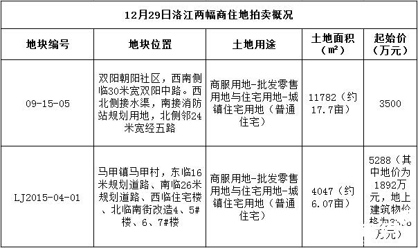 9月11日,位于洛江萬安街道萬福社區LJ2015-01-01地塊、雙陽朝陽社區09-15-05地塊舉行公開拍賣,其中,LJ2015-01-01地塊以14300萬元由建發收入囊中;09-15-05地塊因應價低于區政府設定的出讓保留底價未能成功出讓。