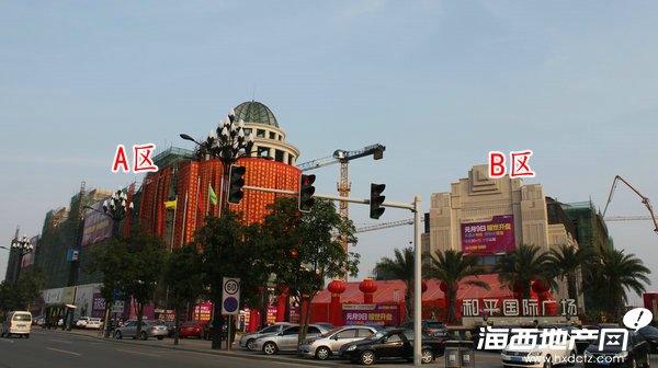 和平國際廣場A區外街封頂未落架,內街建至第三層;B區內外街均已封頂,暫未落架;C區兩棟公寓建至第5層,D、E兩區暫未動工建設。