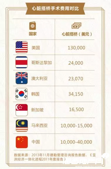 同時,相對低廉的醫(yī)療花費(fèi)大力促進(jìn)馬來西亞醫(yī)療旅游產(chǎn)業(yè)的發(fā)展,以心臟搭橋手術(shù)為例,美國花費(fèi)約為13萬美元,在馬來西亞1-1.5萬美元,僅1/10。