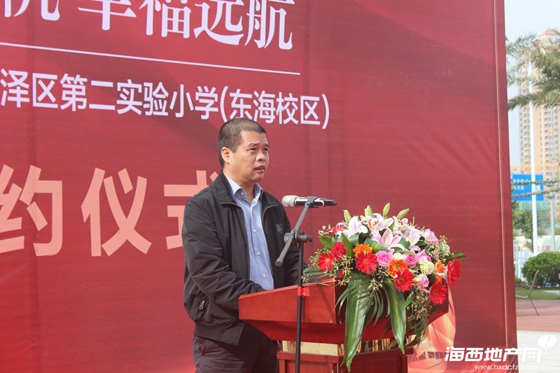 豐澤區副區長邱朝陽先生在致辭中表示,自泉州市政府入駐東海片區以來,片區迎來了建設提速期,每一年都有大型市政配套落地實施。東海片區人口的快速增加也讓教育資源的需求更加緊迫,政府投資2.1個億建設豐澤區第二實驗小學東海校區擬將建設48個班,包括碧桂園天璽灣業主子在內的適齡兒童將享有優質的教育資源。