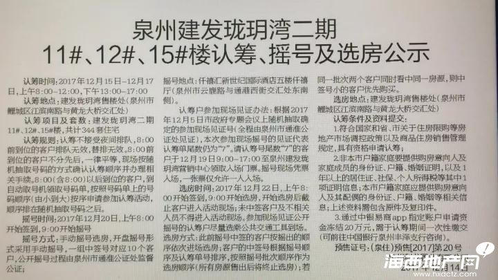 泉州建發瓏玥灣二期11#、12#、15#樓認籌、搖號及選房公示