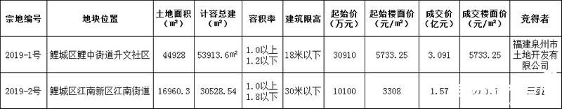 8月7日下午,泉州市國土資源局成功出讓2019-1號、2019-2號兩幅地塊,此次土拍吸引了龍湖、金地、南益、三盛、寶嘉、大唐、力高、廣海等房企參與,2019-1號地塊僅有2家房企報名,2019-2號地塊共有龍湖、金地、南益、三盛、寶嘉、大唐、力高、廣海等9家房企報名。最終三盛以1.53億元競得2019-2號,樓面價5011.7元/㎡,福建泉州市土地開發(fā)有限公司以底價3.091億元競得2019-1號,樓面價5733.25元/㎡。