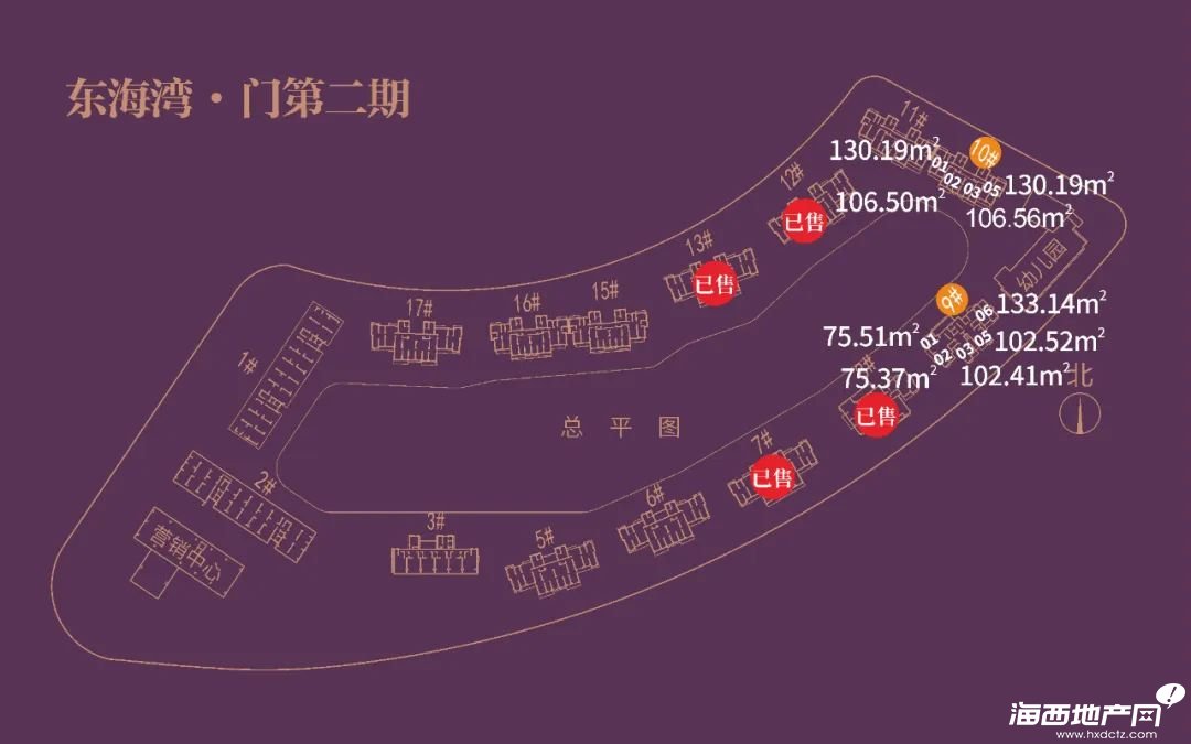 東海灣門第二期9#10#樓共有住宅304套,價格區間10741-15991元/㎡,整體均價約14198元/㎡,戶型面積段為建面約75-133㎡。