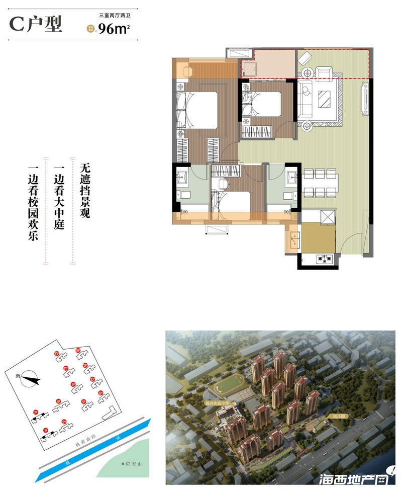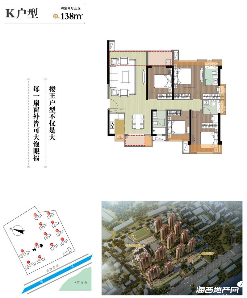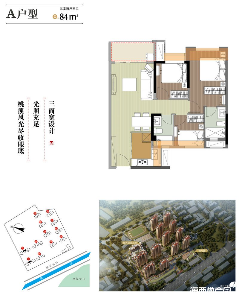 美嶺新榜園主推戶型建面約84-138㎡的三至四房。