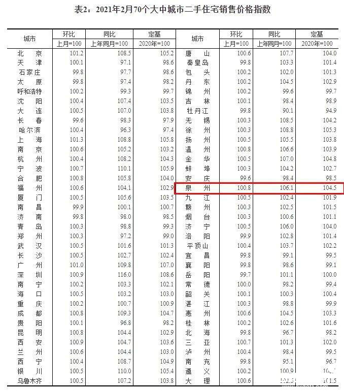根據(jù)國家統(tǒng)計局70城二手住宅價格漲跌數(shù)據(jù),泉州躋身2月份中國房價環(huán)比上漲TOP10。