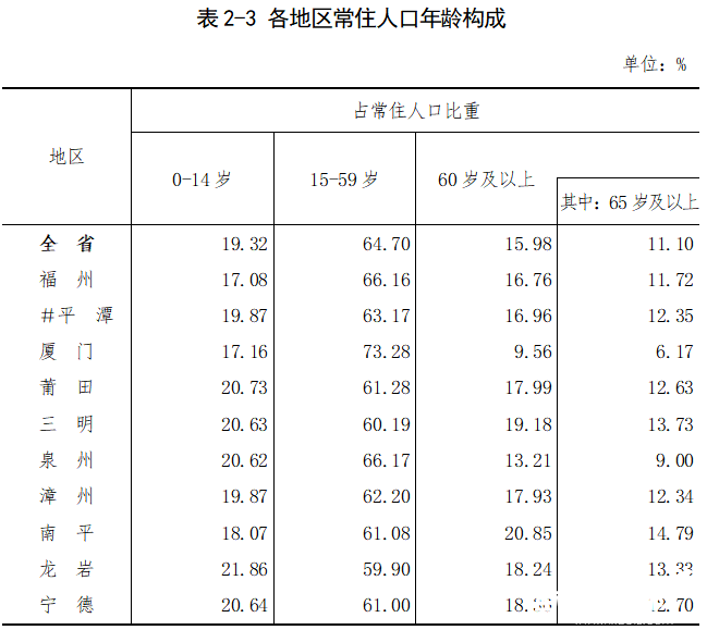 (七)城鄉(xiāng)人口。全省常住人口中,居住在城鎮(zhèn)的人口為2855.72萬(wàn)人,占68.75%;居住在鄉(xiāng)村的人口為1298.28萬(wàn)人,占31.25%。與2010年相比,城鎮(zhèn)人口增加749.28萬(wàn)人,鄉(xiāng)村人口減少284.69萬(wàn)人,城鎮(zhèn)人口比重上升11.66個(gè)百分點(diǎn)。數(shù)據(jù)表明,10年來(lái),福建積極推進(jìn)新型城鎮(zhèn)化建設(shè),加快構(gòu)建現(xiàn)代城鎮(zhèn)體系,持續(xù)推動(dòng)農(nóng)業(yè)轉(zhuǎn)移人口市民化等措施取得明顯成效,城鎮(zhèn)化水平進(jìn)一步提高。
