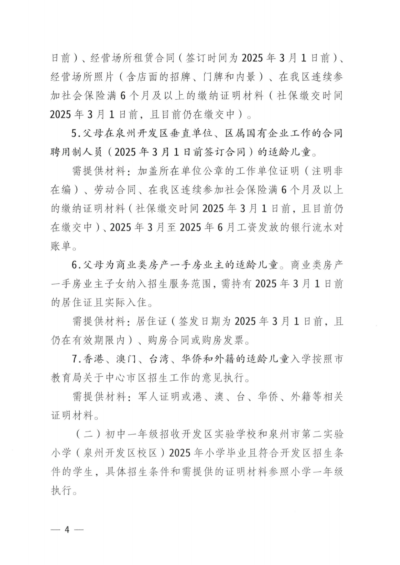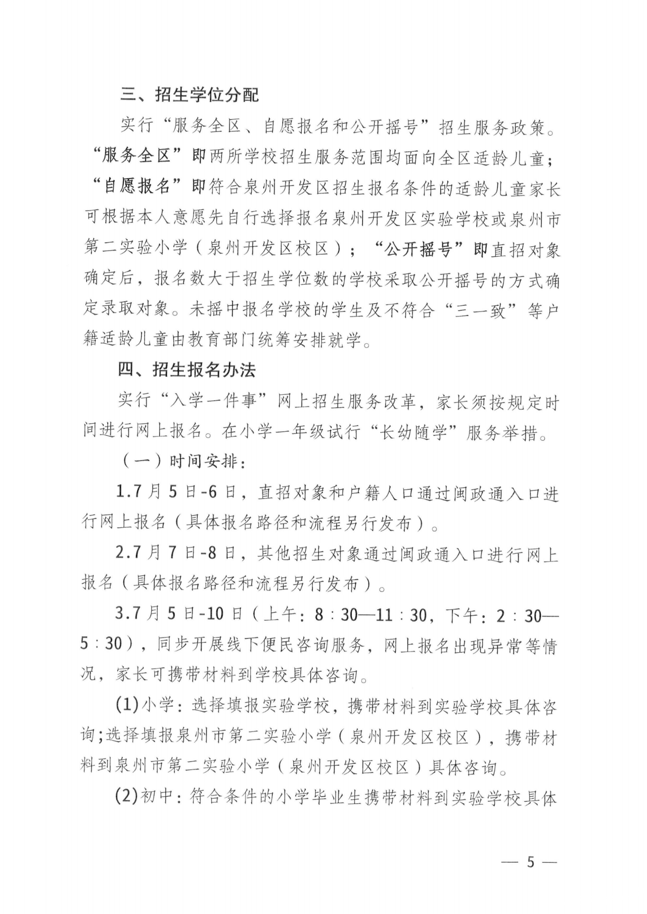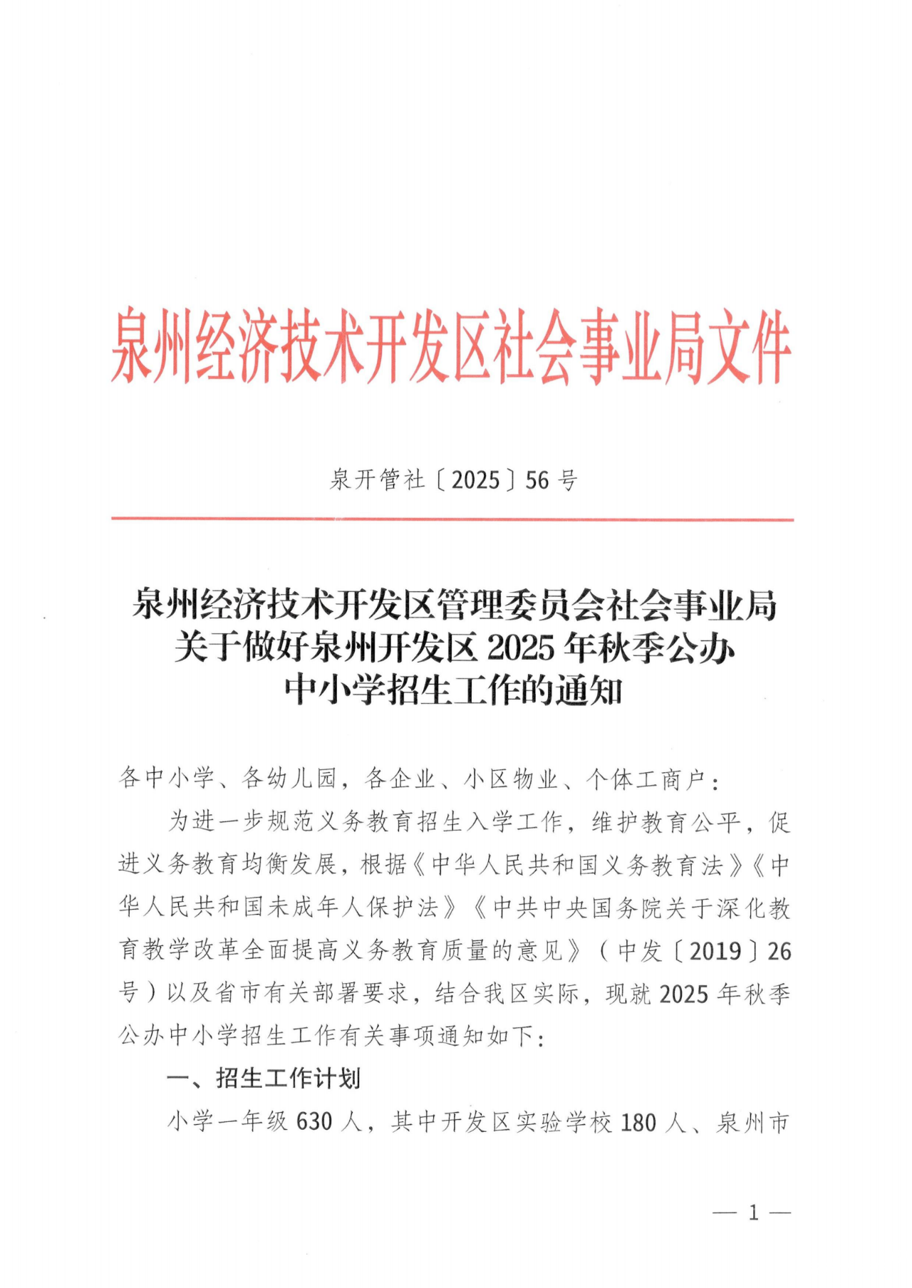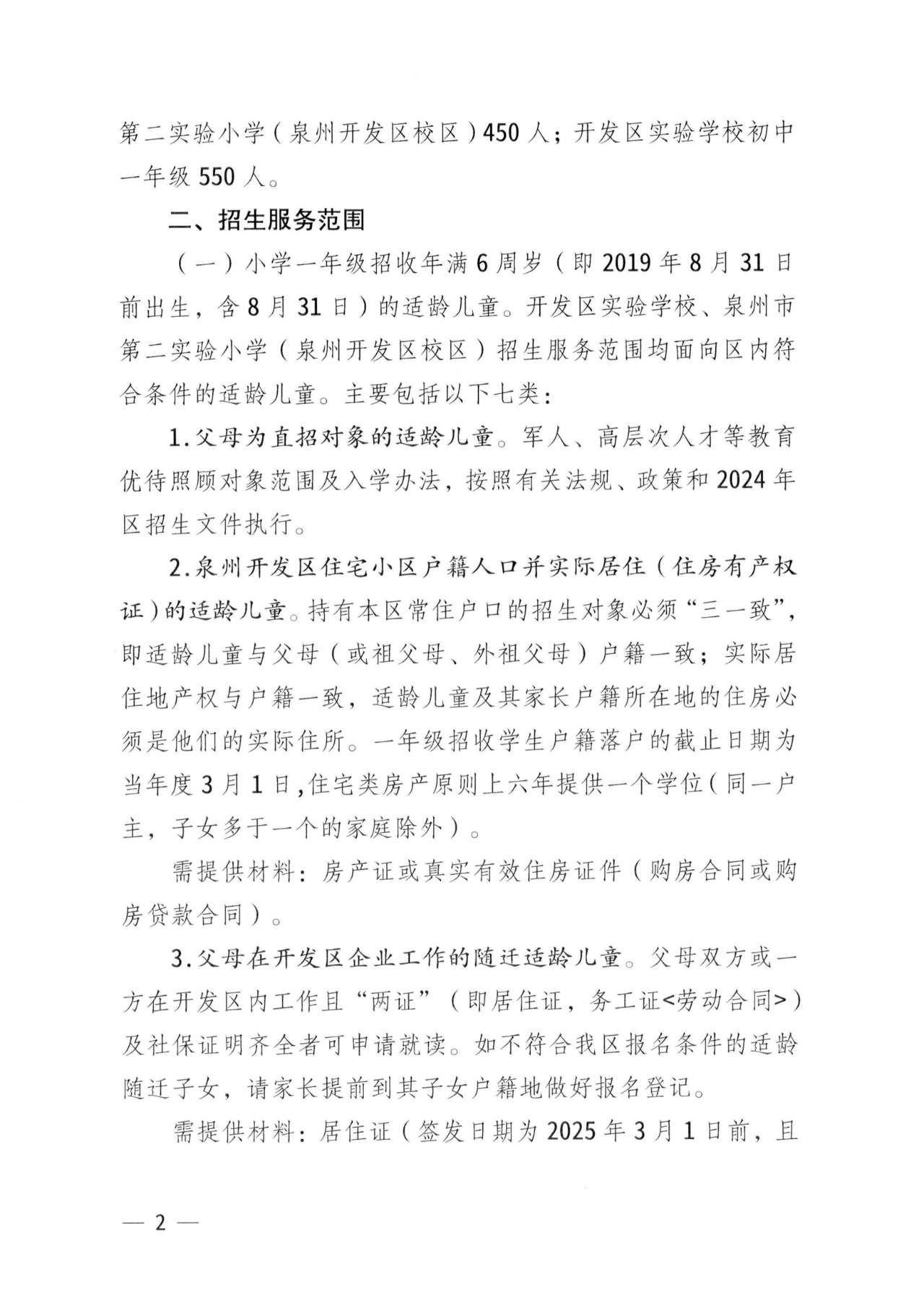 泉州開發區印發關于2025年秋季公辦中小學招生工作的通知