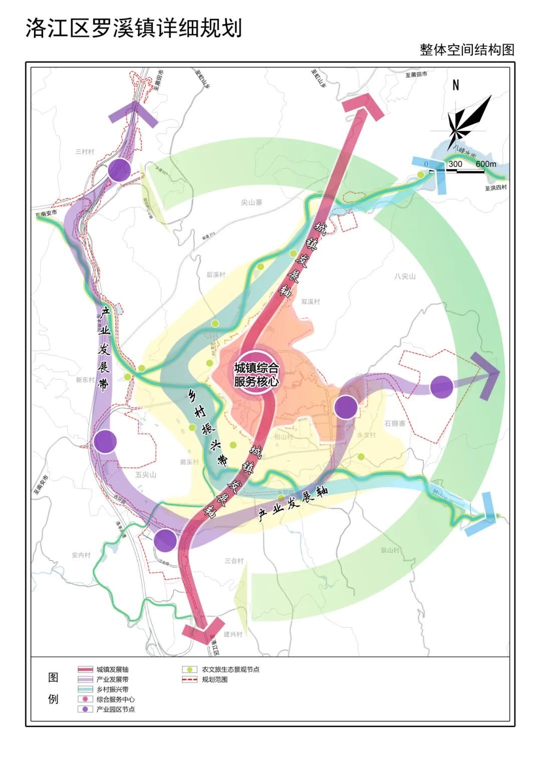 【規劃目標】以“泉州中北部入戶花園、生態宜居樞紐鎮”為目標,形成“田園環繞、一軸兩帶、一核多點”的空間結構。