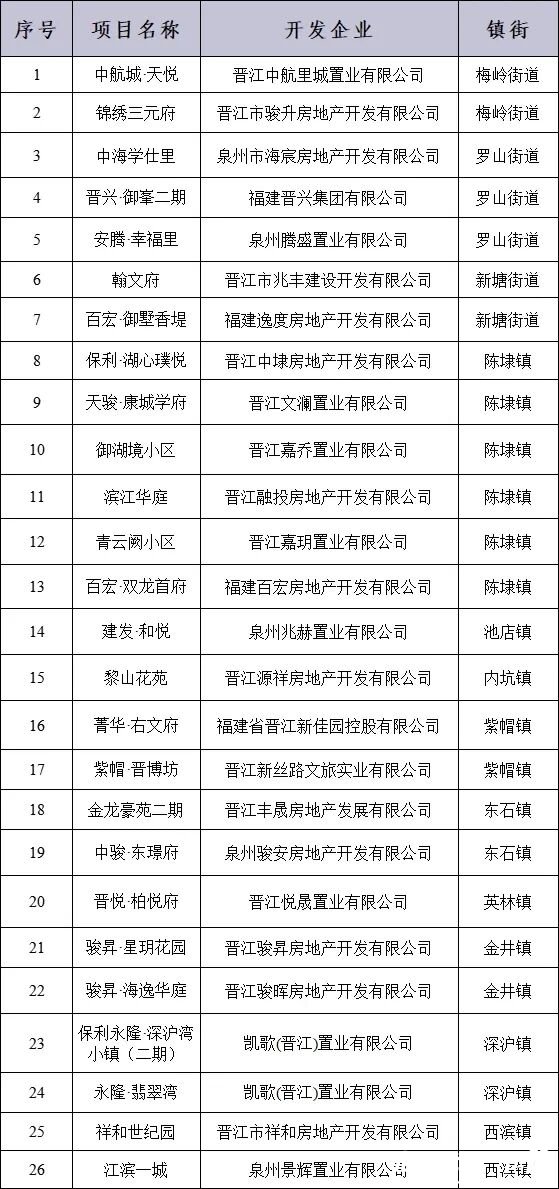 晉江市轄區內房地產項目取得商品房預售許可或現售備案的新建商品住房,不含商業、辦公、車位。