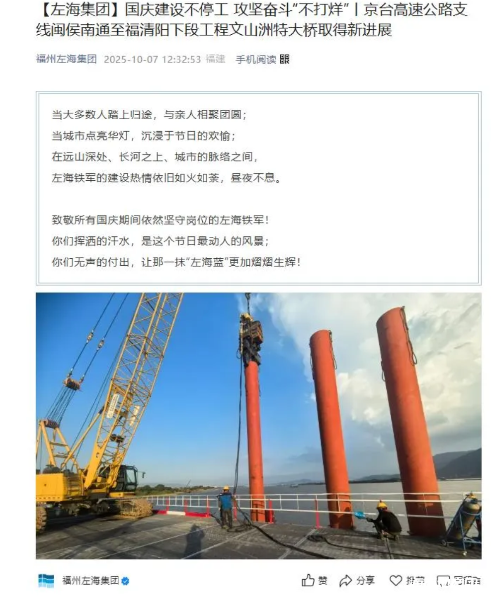 2025年10月7日,福州左海集團對外透露文山洲特大橋的最新建設進展 。
