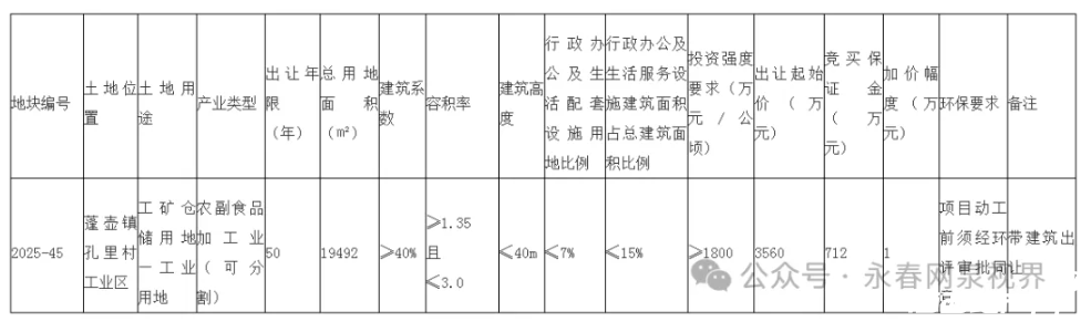 經永春縣人民政府批準,永春縣自然資源局決定掛牌出讓1宗工業國有建設用地使用權。現將有關事項公告如下: